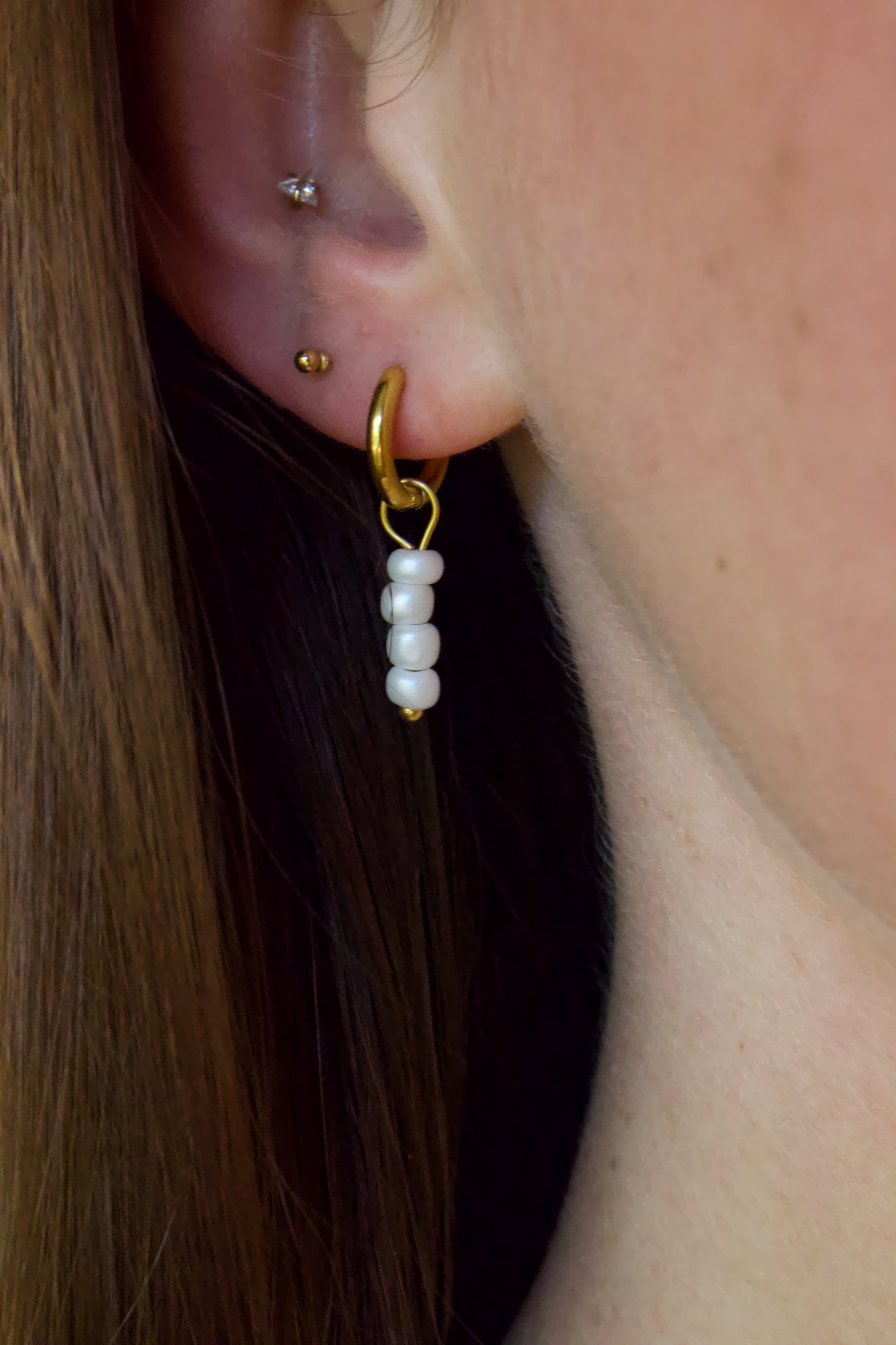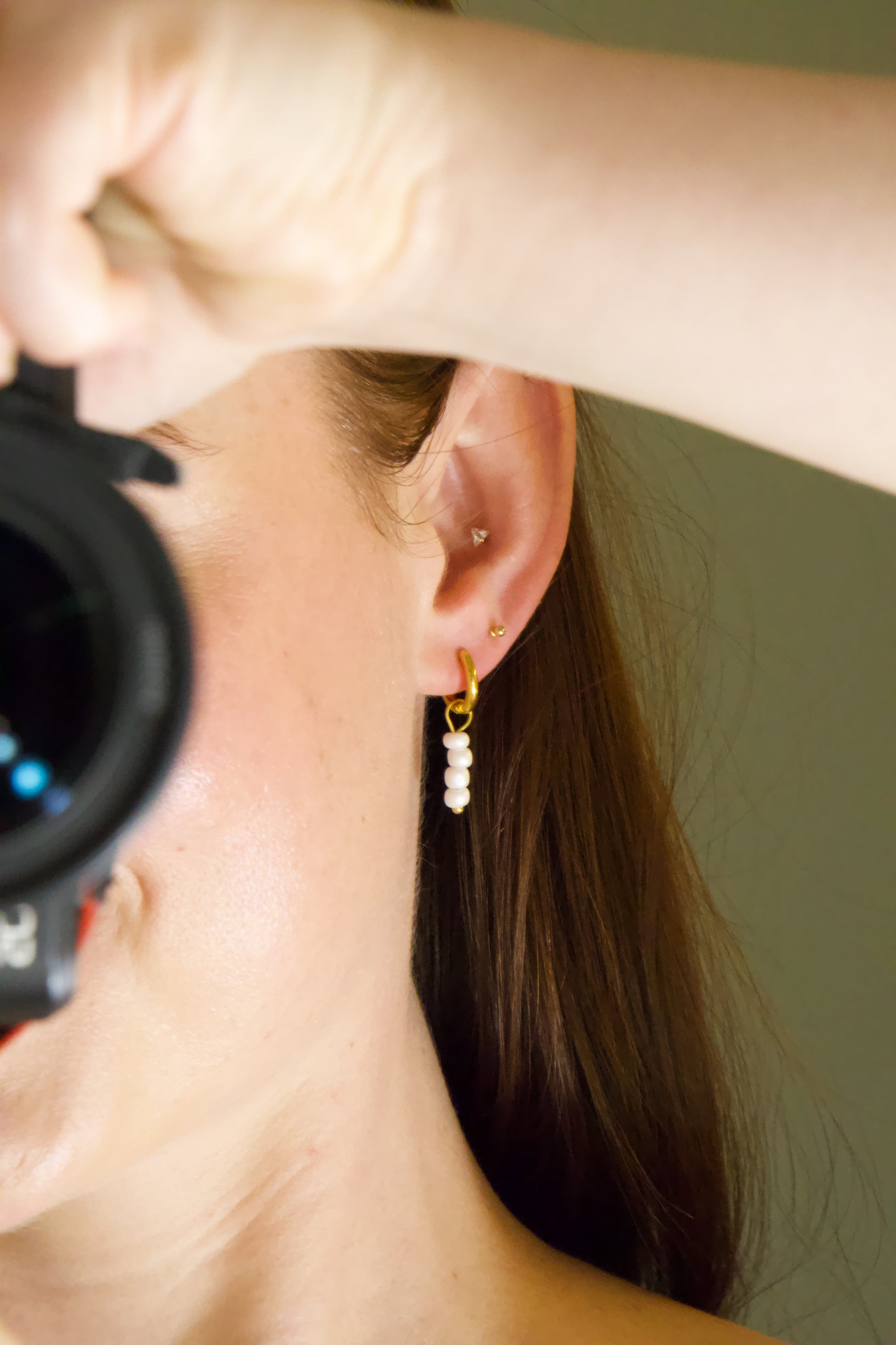 - Two in one earring, huggie can be worn on it's own or with the beads.