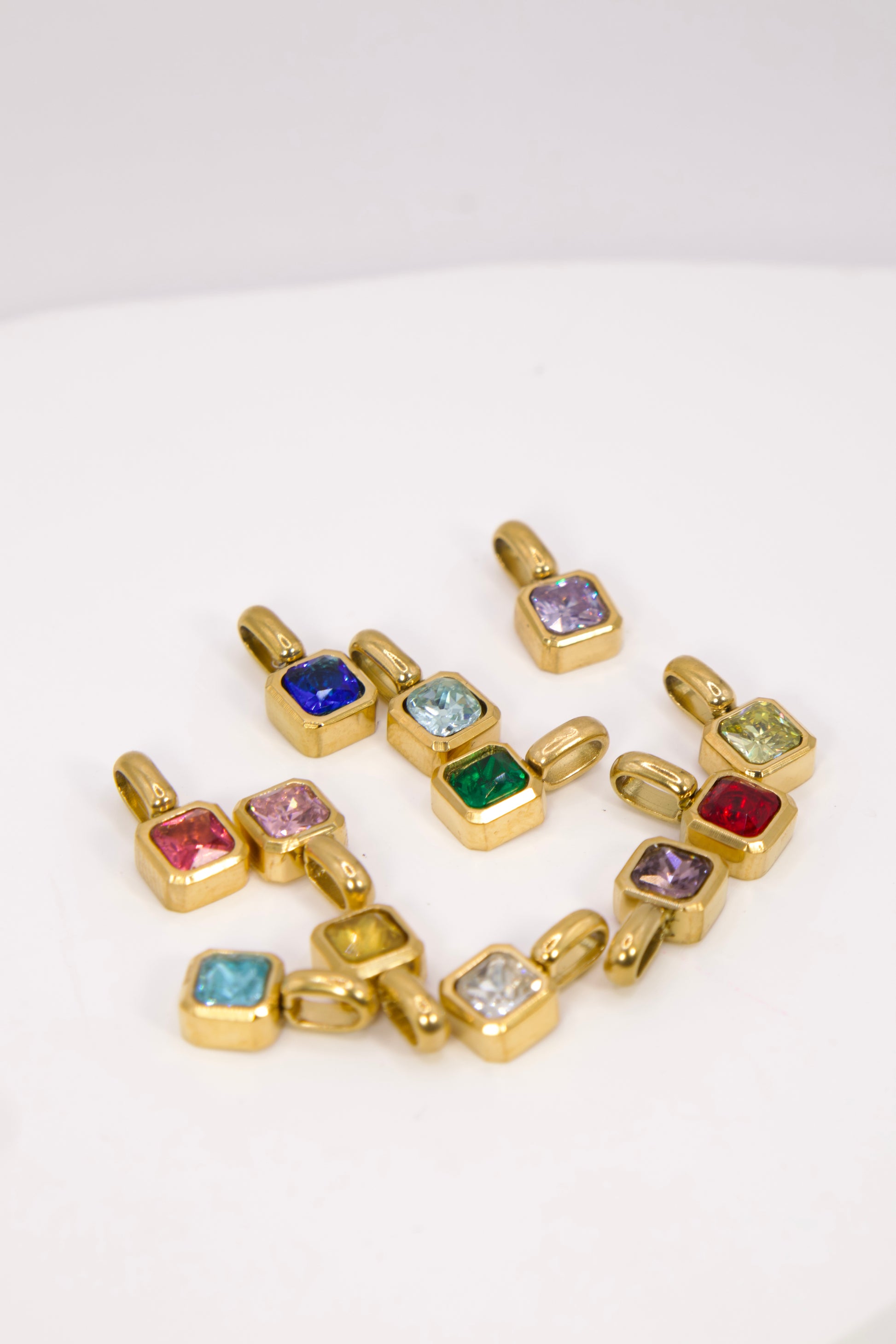 - Gold stainless steel Zirconia birthstone charms.