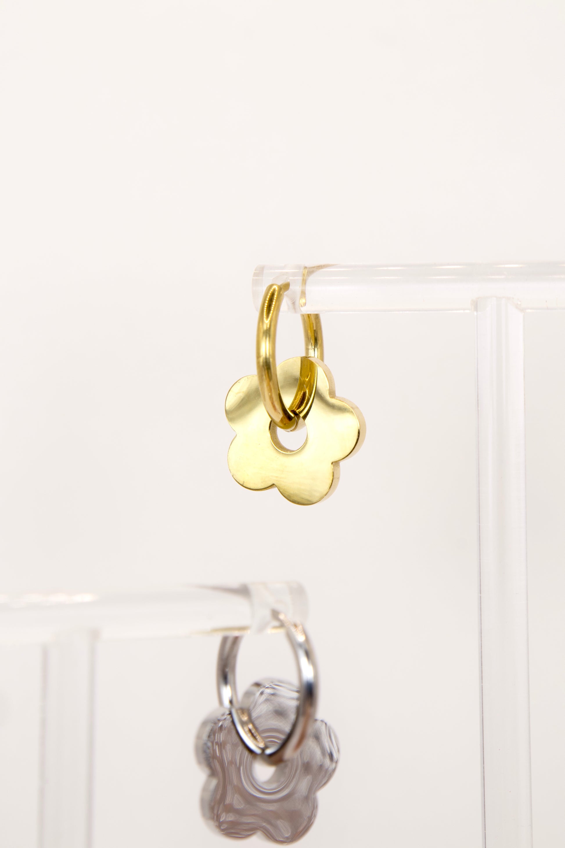 - Two-In-One Earring (flower can be removed and hoop worn by itself).