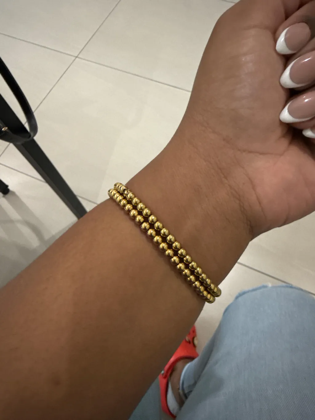 - Elastic band with 18k gold stainless steel balls attached.