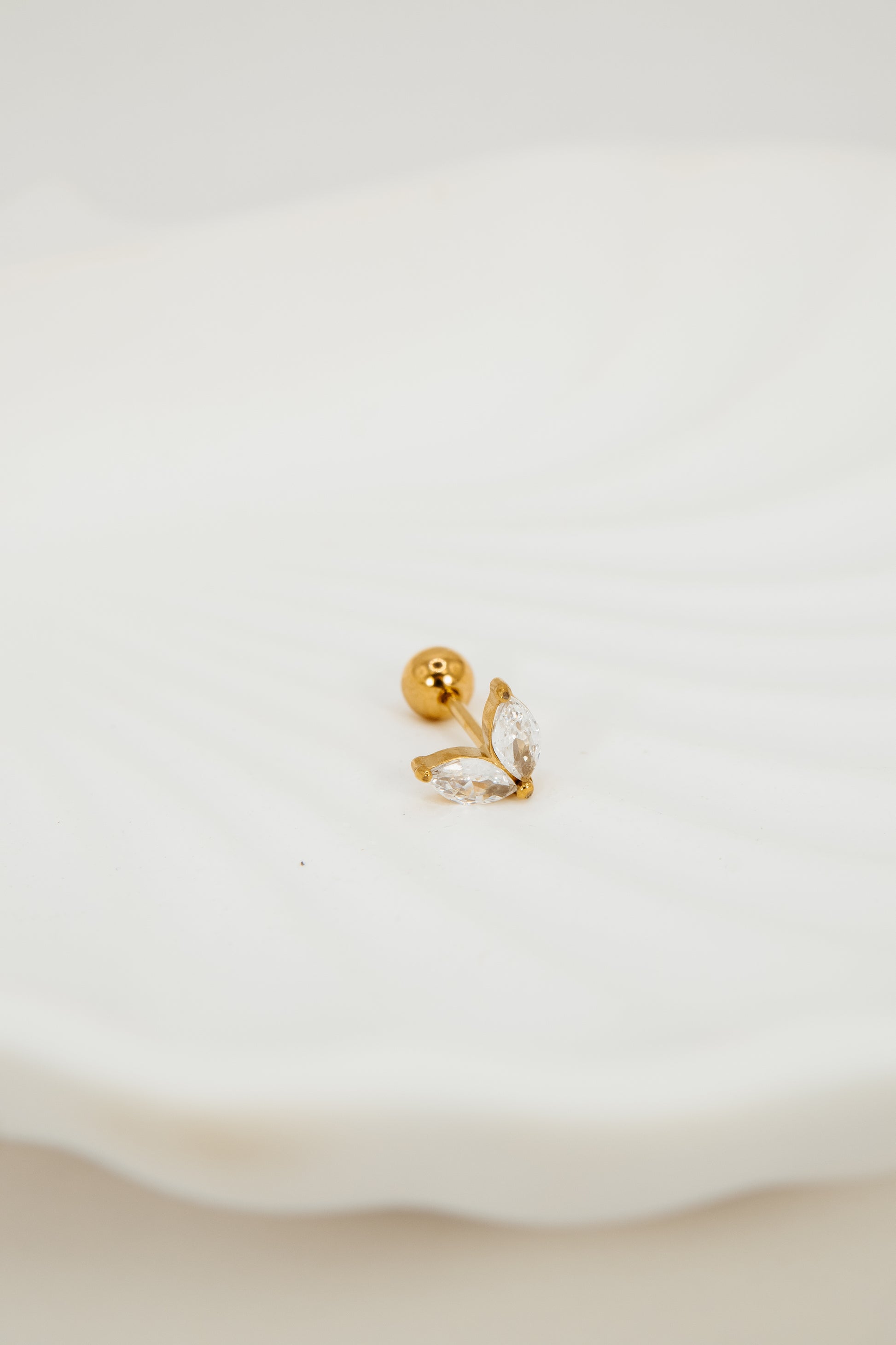 - Stainless Steel 18k Gold and PVD Plated flat back stud earring (1 piece) with rhinestone attached.